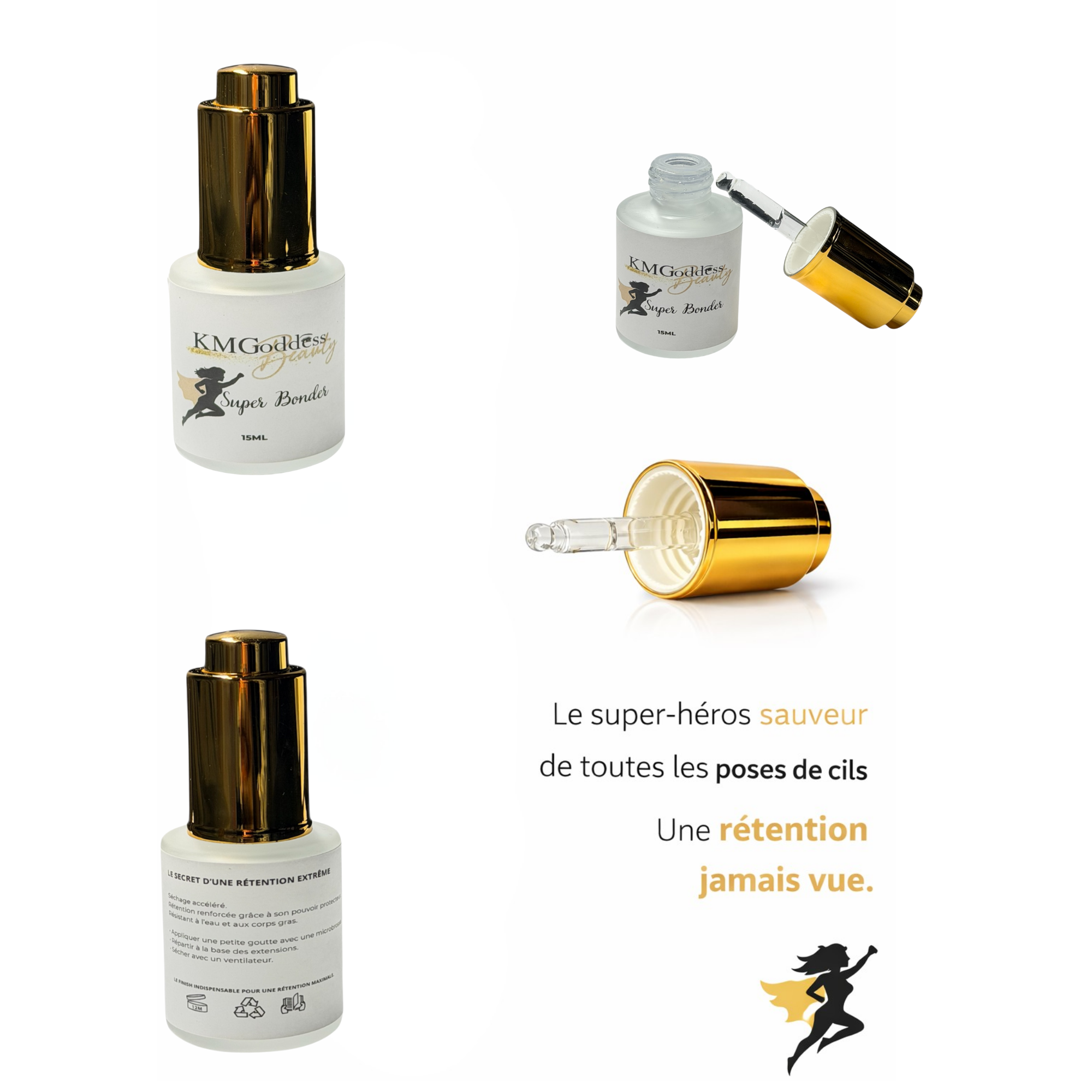 Le Super Bonder KMGoddess est l’allié indispensable des lash artists professionnelles qui souhaitent offrir à leurs clientes une tenue longue durée, une finition parfaite et un confort optimal après la pose d’extensions de cils.